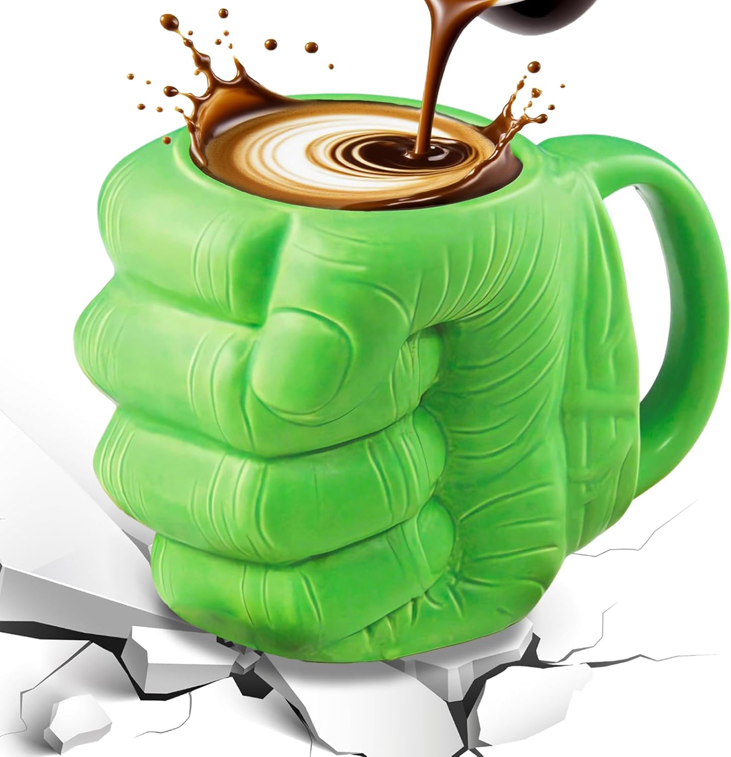 - 【FUN SUPERHERO FIST DESIGN】: Featuring a bold, sculpted green fist design inspired by iconic comic book heroes, this mug is a conversation-starting addition to any kitchen, office, or display shelf. A perfect gift for superhero fans, comic lovers, collectors, or anyone who appreciates imaginative, character-driven drinkware