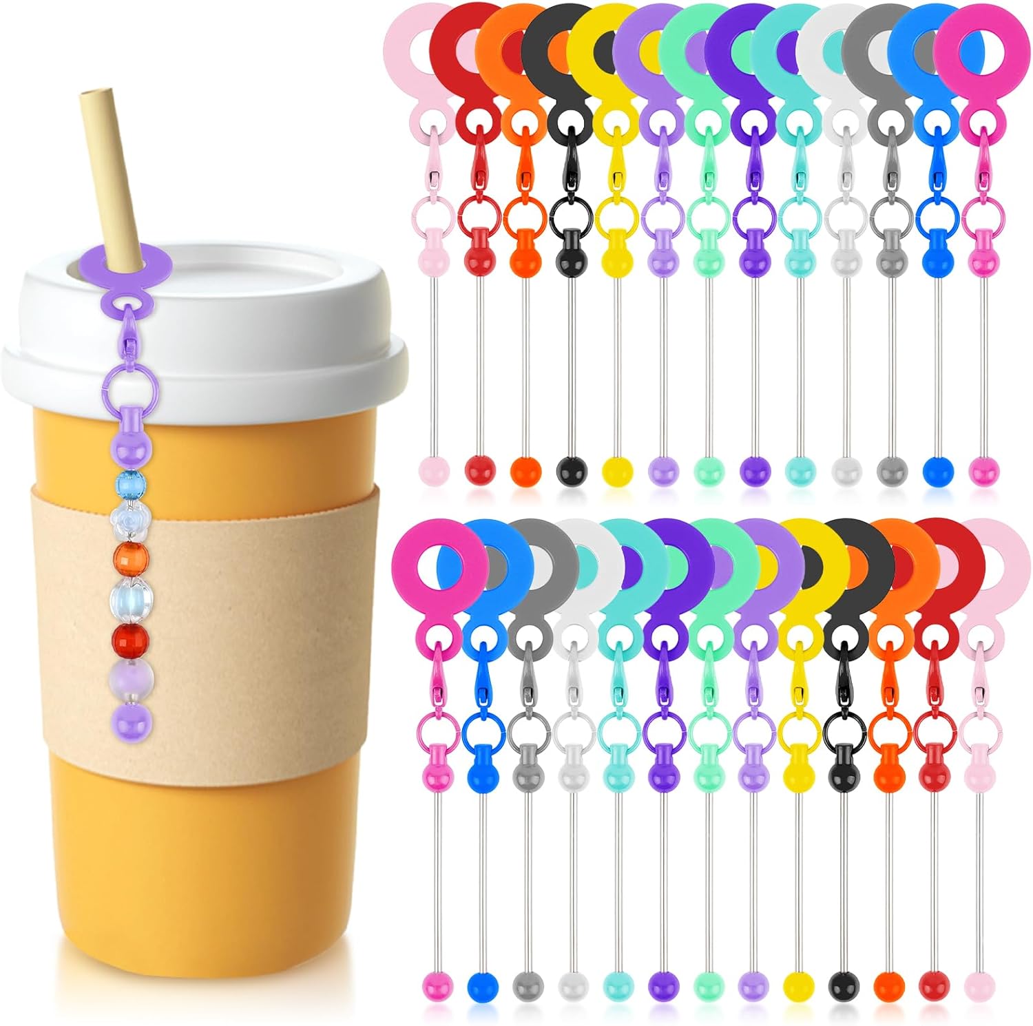 26Pcs Beadable Tumbler Straw Charm Adapters DIY Beaded Straw Toppers Charm Adapters Silicone Tumbler Decoration Charms Pendant Ornament Compatible with Stanley for Jewelry Gift Making Blank