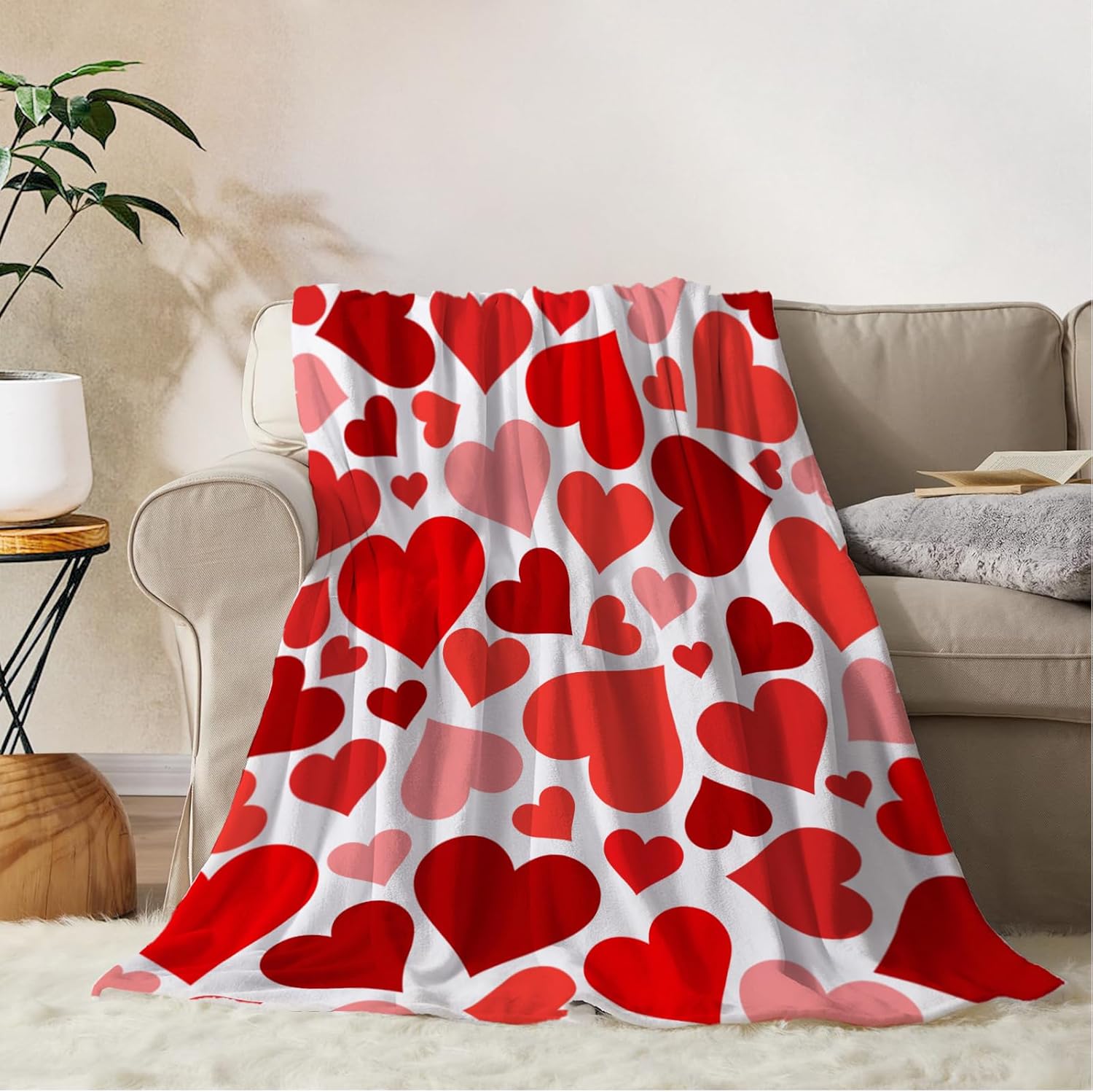 - 【Cozy and Soft Throw Blankets】: The Red Valentines Day blankets and throws are made of high quality flannel, which is super soft and comfortable,fluffy,breathable, warm and cozy. The lightweight throw blanket will keep you comfy all seasons without excessive weight like other fabrics.The all-round lock stitch seams on the edges makes the couch decorative throw blanket neat and durable.