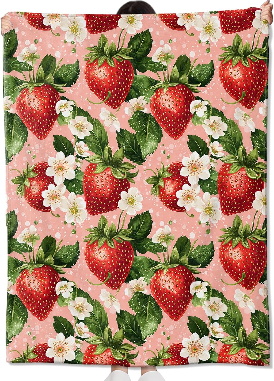 Strawberry Floral Blanket Gifts for Kids Adult Women,Sweet and Fresh Fruit Throw Blankets,Soft Comfy Lightweight for Room Couch Bed Sofa Modern Decor,Spring and Summer Lover 60x50in