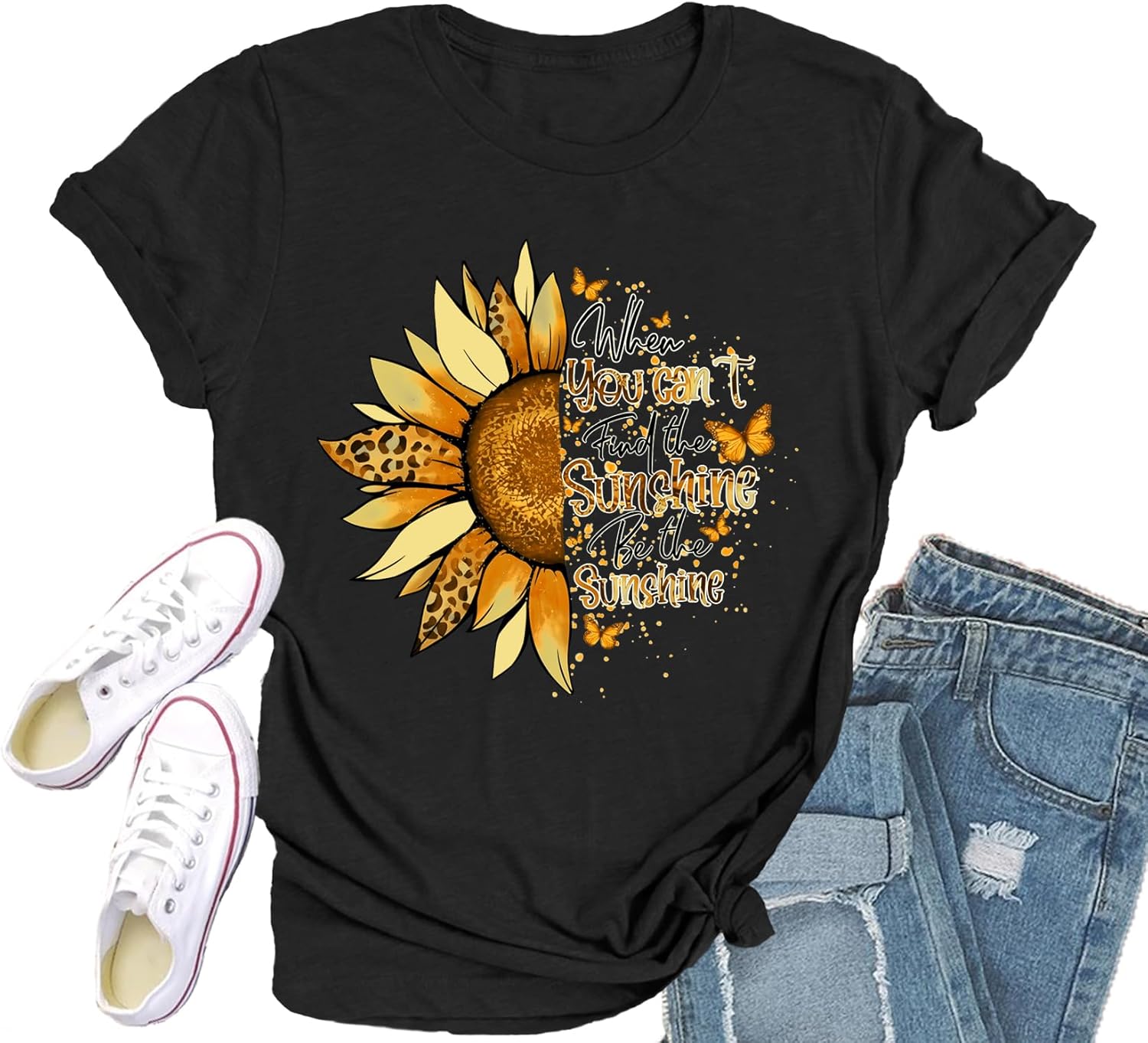 Womens Sunflower Shirts When You Cant Find The Sunshine Be The Sunshine T-Shirt Inspirational Tee Tops
