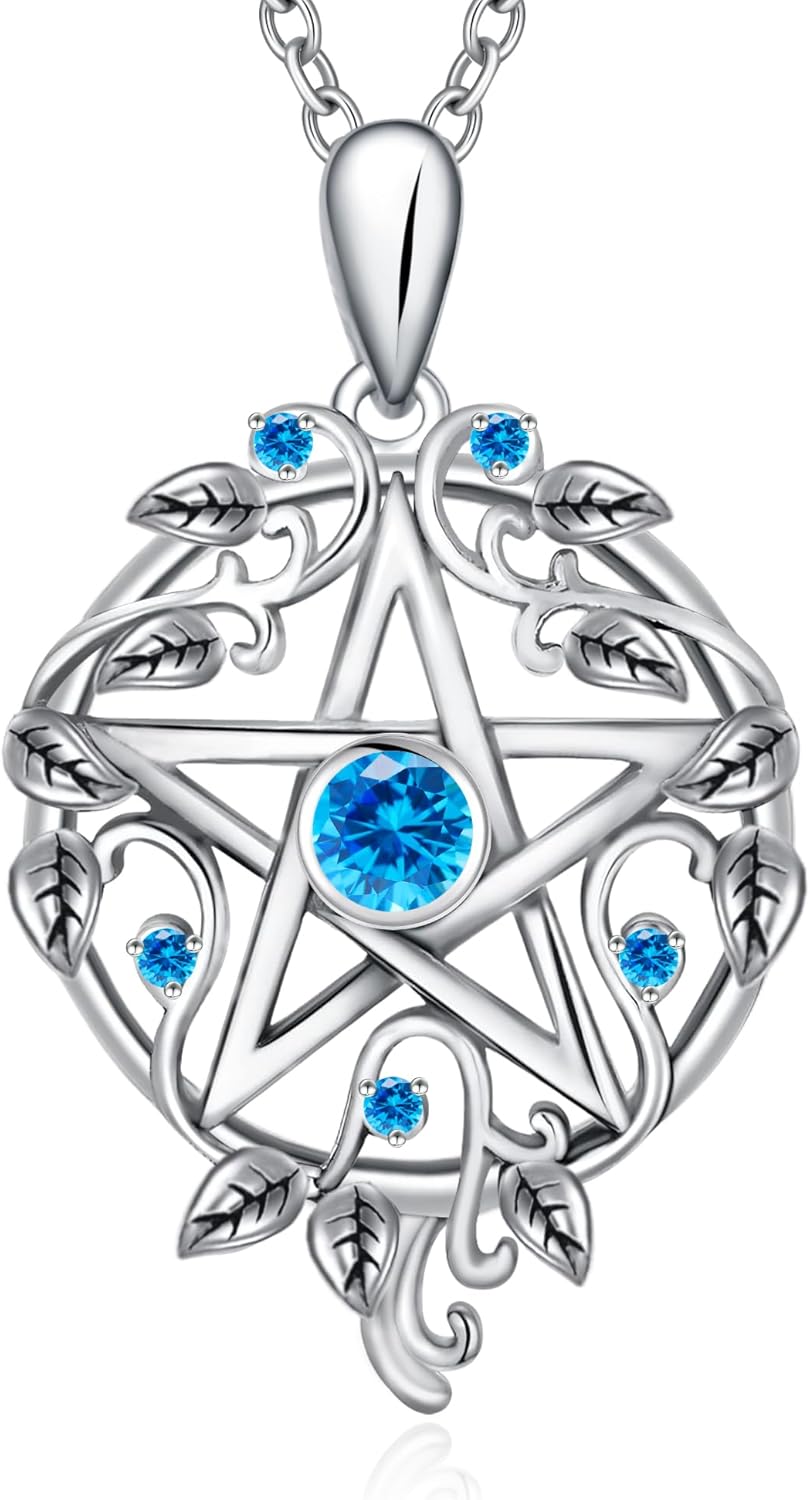 Pentagram Necklace for Women Witchy Gifts 925 Sterling Silver Pentacle Necklace Zircon Wiccan Jewelry for Women Pendant Hecate Necklace Wiccan Gifts for Women Wife