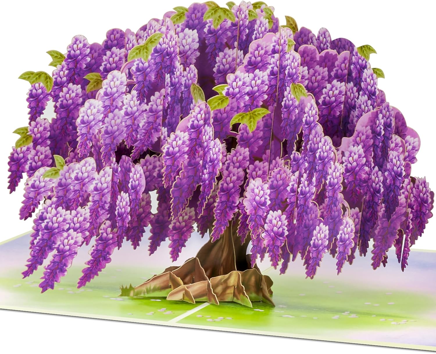 Wisteria Tree Pop Up Card, Purple Flowers, 3D Greeting Cards, Gift For Birthday, Mothers Day, Anniversary, Valentines, Thinking Of You, Thank You, 5x7 - Includes Envelope And Message Note