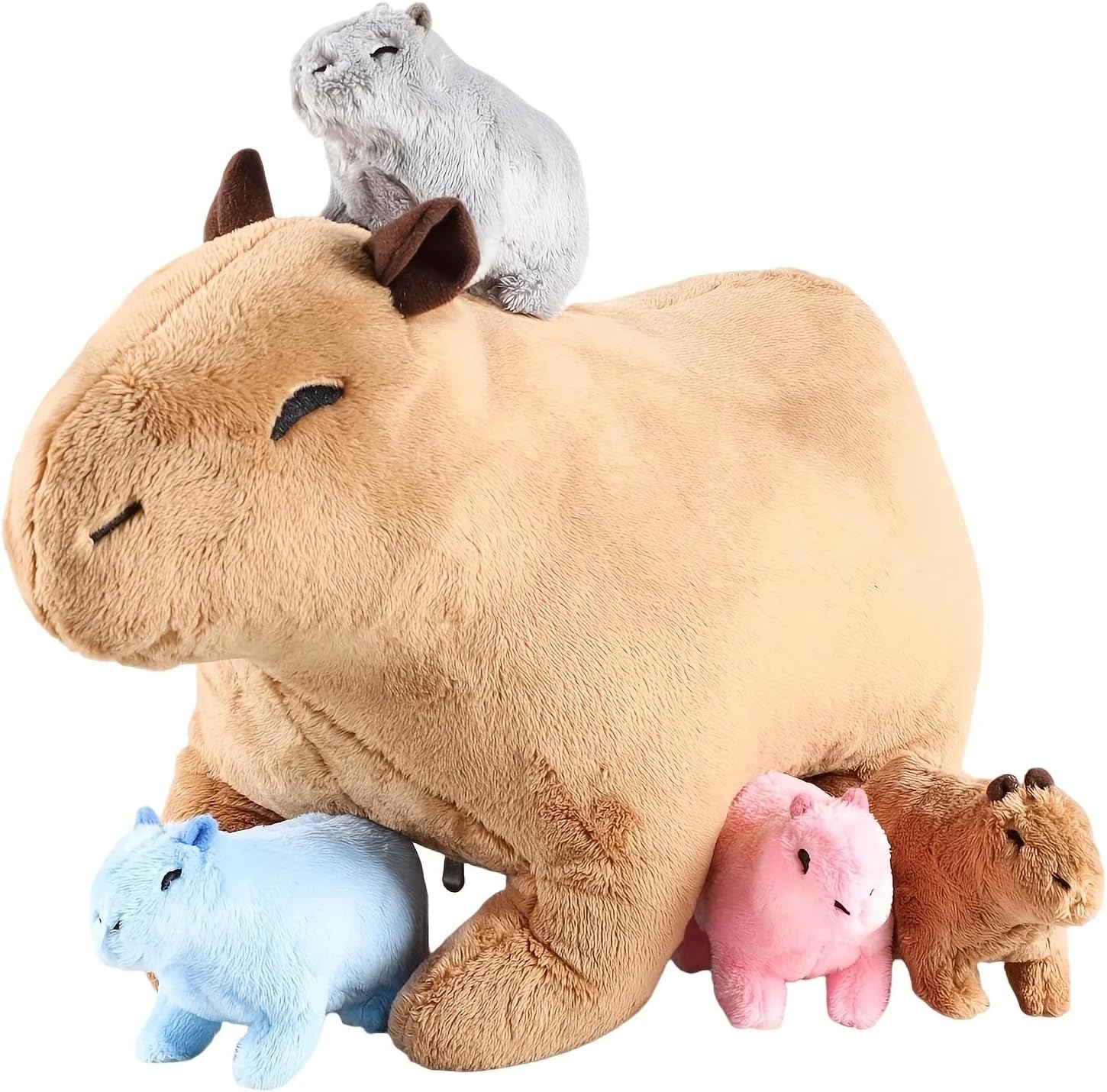 Capybara Plush Toy Set, 13" Mom Capybara with 4 Colorful Baby Plushies Inside, Interactive Hide-and-Seek Stuffed Animal for Kids, Birthday Holiday Christmas Children's Day Gift
