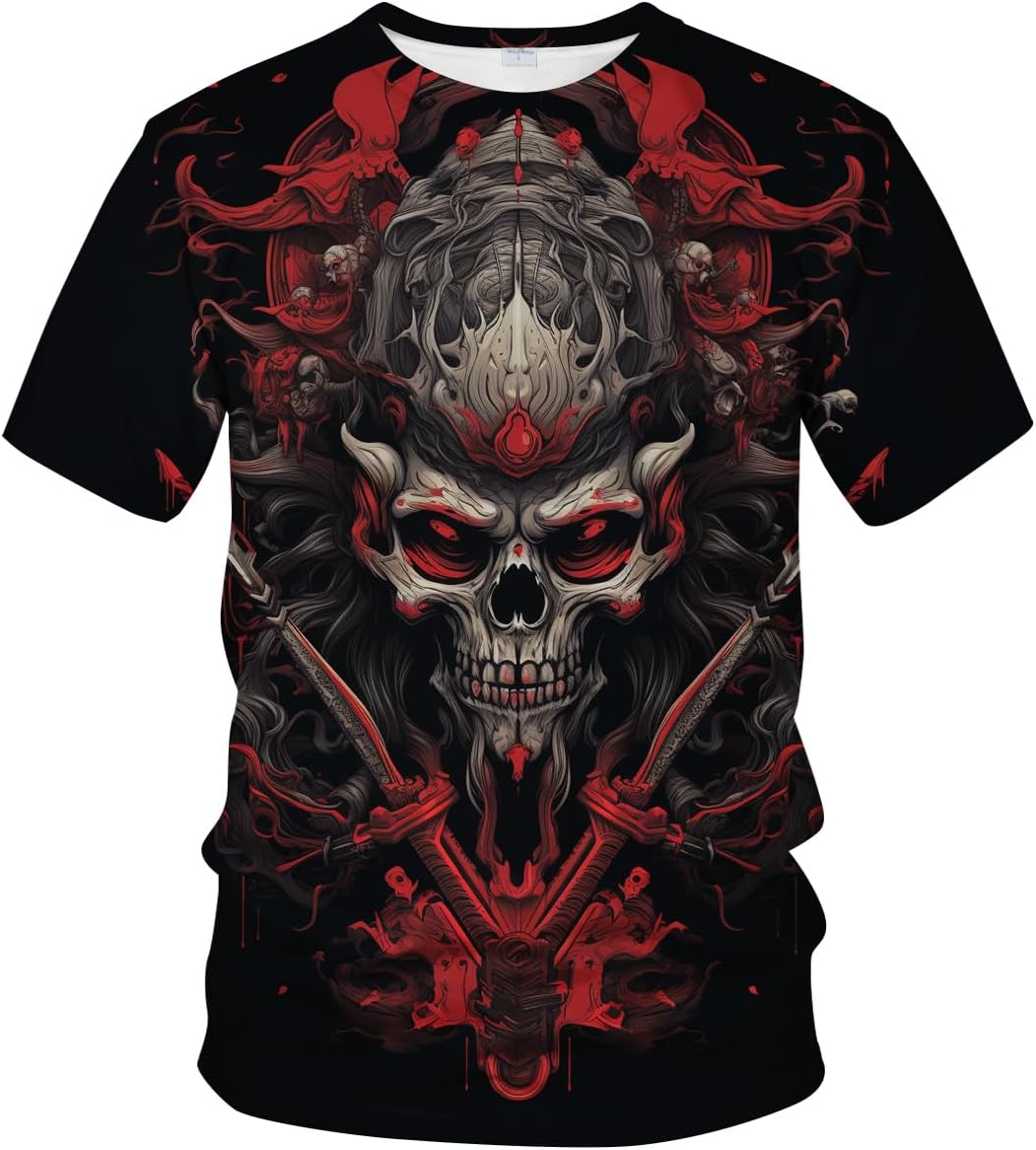 Men's Darkness Warrior T-Shirt Funny 3D Graphic Skull Warrior Summer Short-Sleeved Shirt