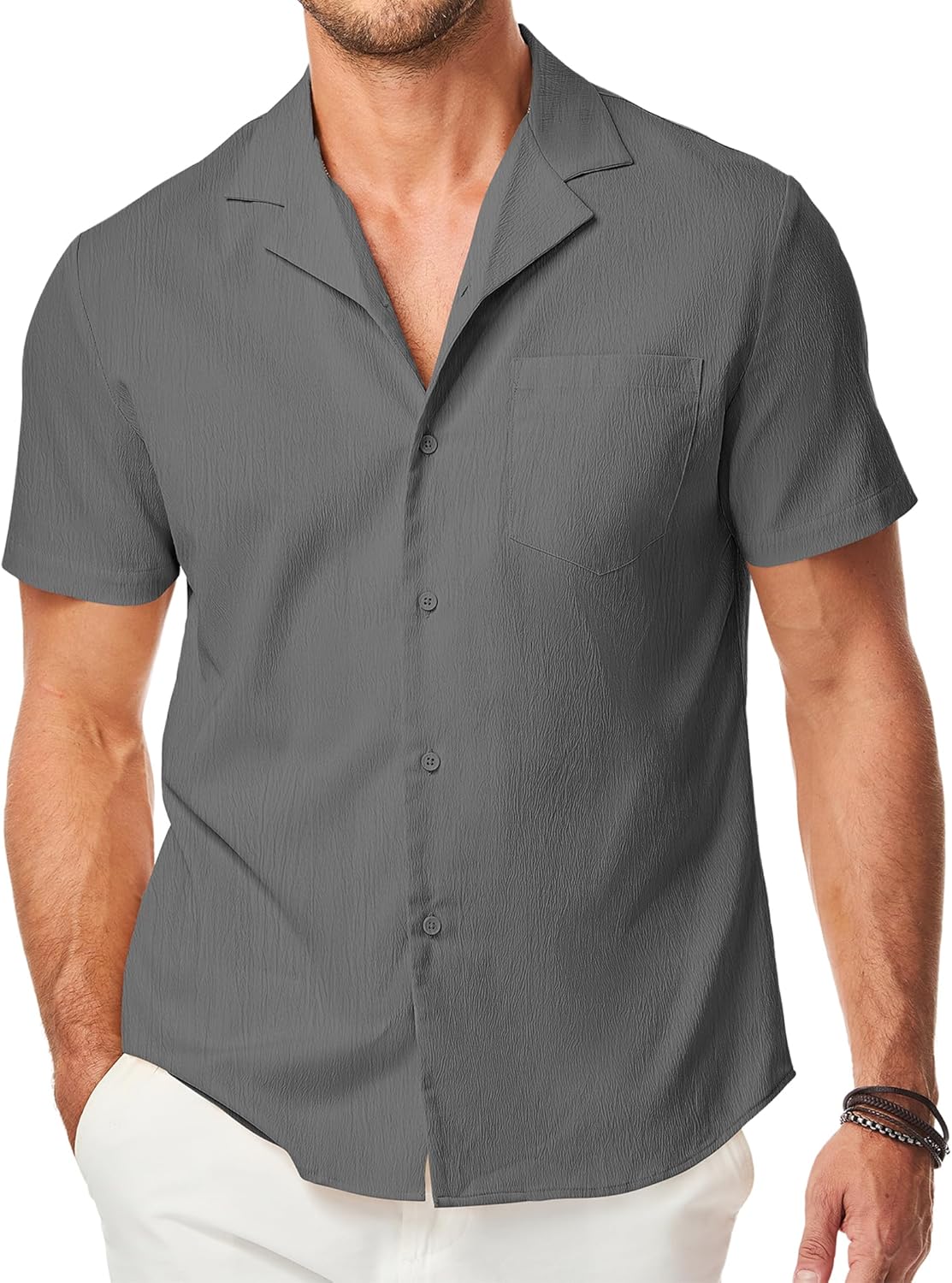 JMIERR Men's Casual Button Down Shirts Short Sleeve Textured Summer Beach Shirt Cuban Vacation Shirts with Pocket