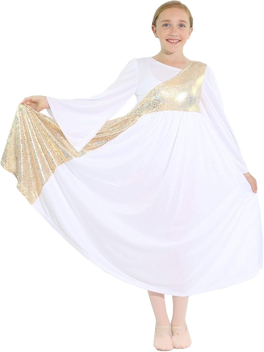 Danzcue Girls Shimmery Asymmetrical Bell Sleeve Dance Dress