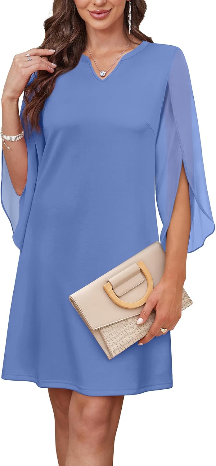 RUMIA Wedding Guest Dresses for Women Chiffon Sleeve Cocktail Dress