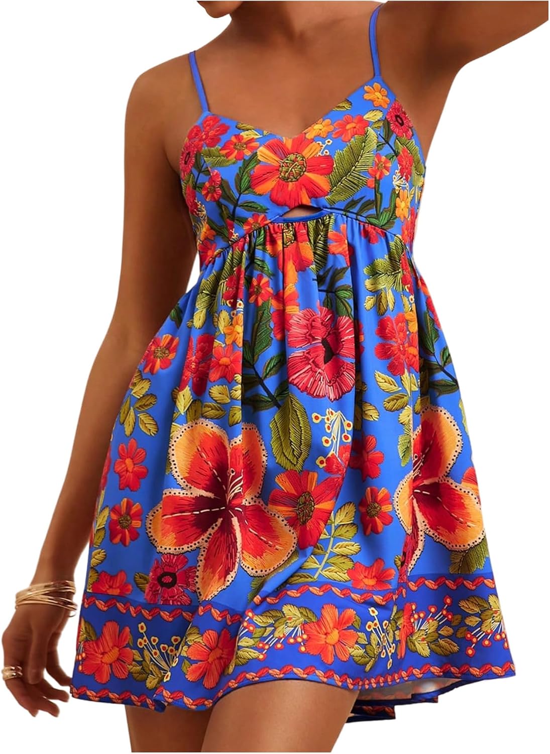 SOLY HUX Women's Summer Floral Print Mini Dress V Neck Spaghetti Strap A Line Flowy Boho Vacation Dresses Sundress Blue Floral Small
