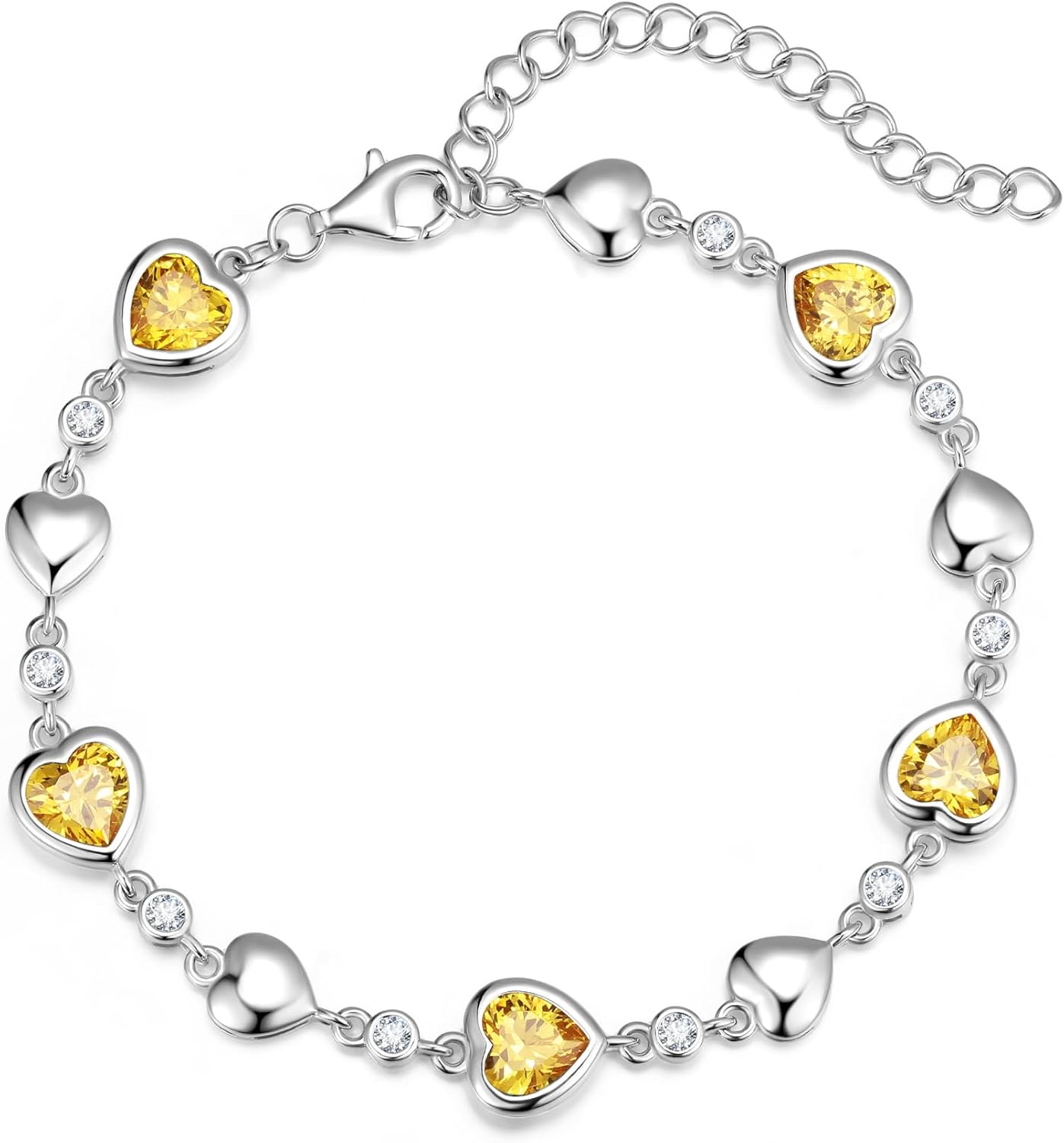 Carleen Birthstone Bracelets for Women 925 Sterling Silver Five Heart Station Created Gemstone Tennis Bracelet Jewelry Anniversary Birthday for Wife, 7"+1.2" Extender