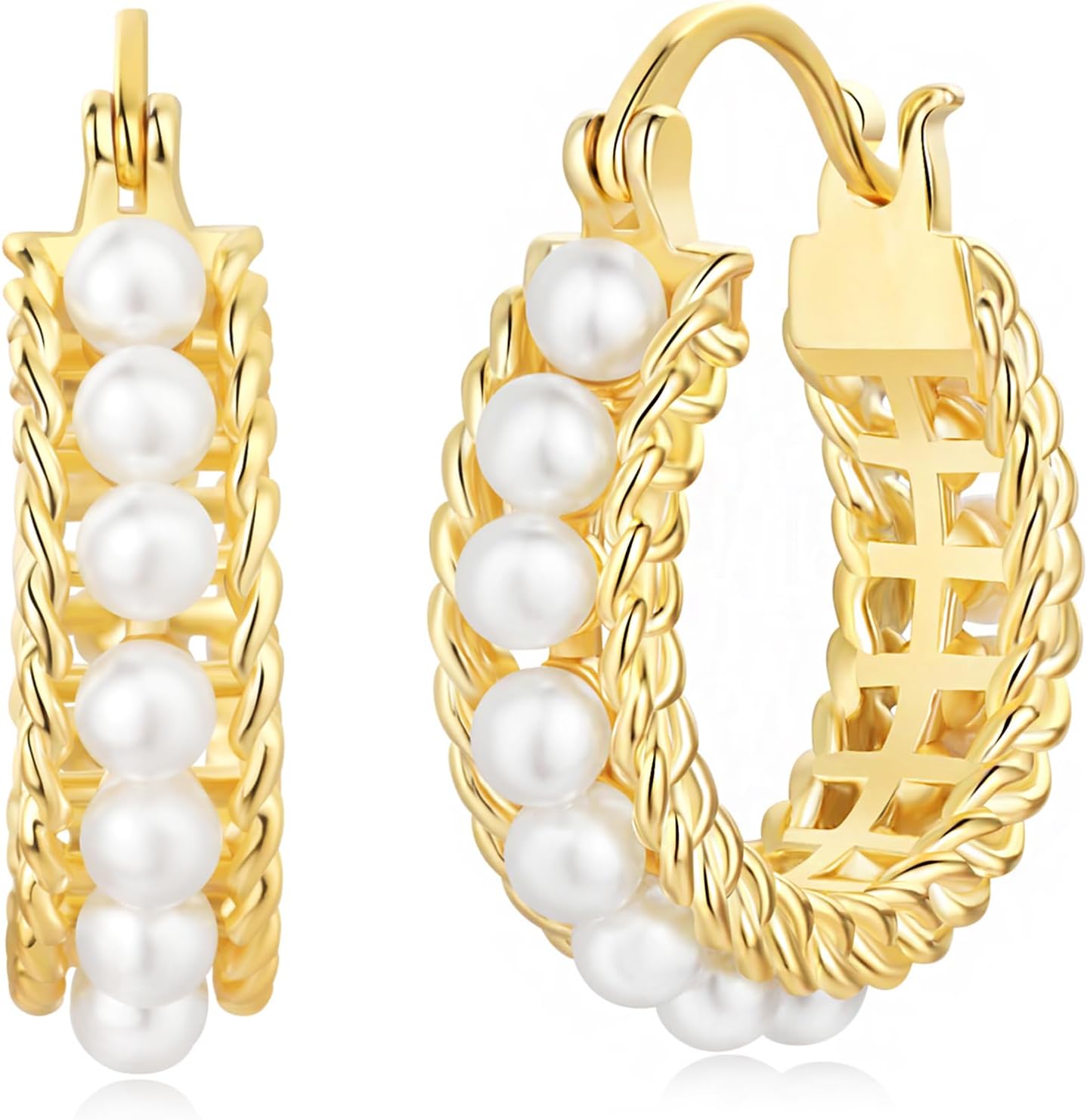 Pearl Hoop Earrings for Women, 18K Gold Plated Small Gold Hoop Earrings, Trendy Hypoallergenic Pearl Huggie Hoops Stud