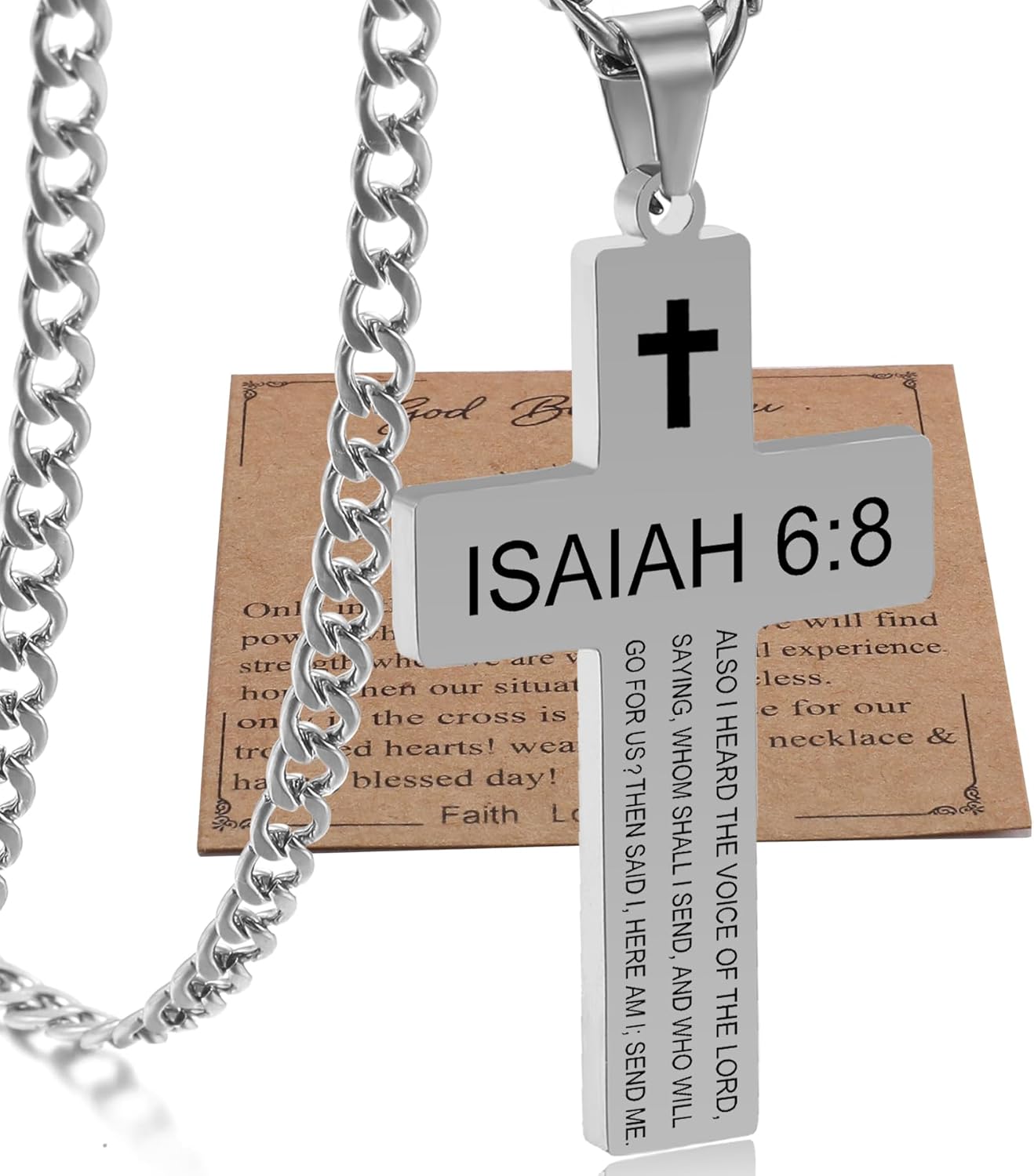 SKQIR Cross Necklace for Men with Bible Verse, Christian Religious Scripture First Communion Cross Chain Pendant for Boys Jewelry Easter Basket Essentials Stuffers Graduation Gifts