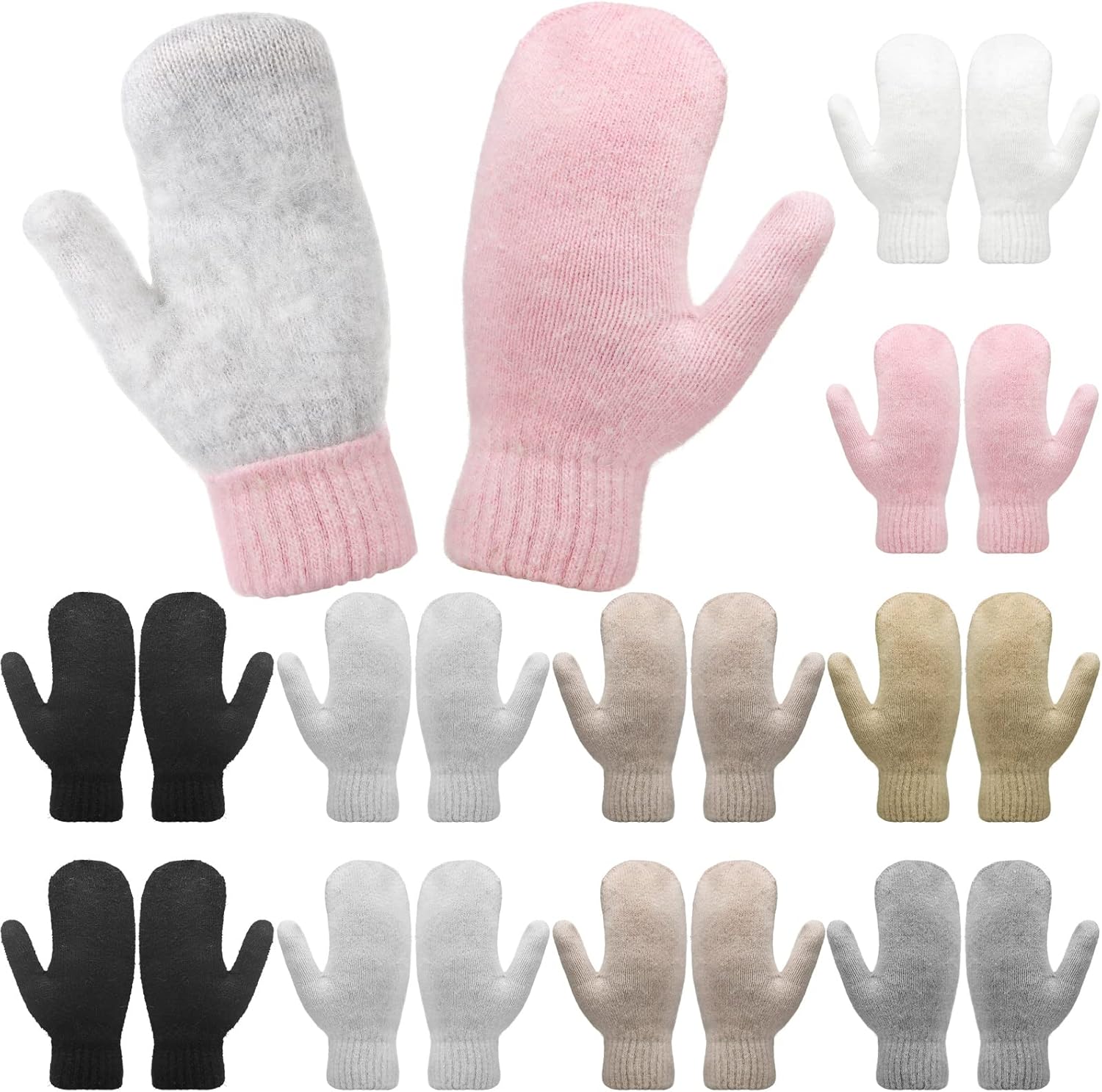 Meanplan 10 Pairs Wool Knitted Mittens for Women Winter Lined Ladies Fleece Solid Cozy Mittens Warm Gloves for Outdoor Indoor Adult Cold Weather, 7 Colors