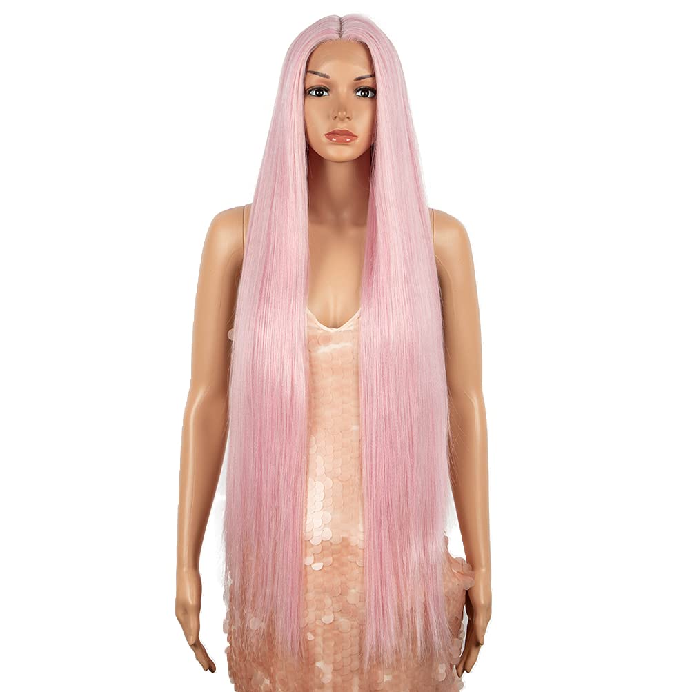 Style Icon 38" Super Long Straight Wigs Lace Front Wigs 6" Deeper Middle Part Lace Hairline Pink Wig (38", PINK15)