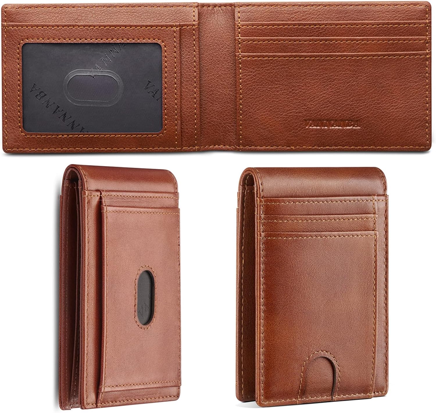 VANNANBA Slim Wallets for Men Leather 14 Card Slots + 1 ID Window, Mens Wallet RFID Blocking Front Pocket Bifold Wallet Thin Credit Card Holder with Gift Box