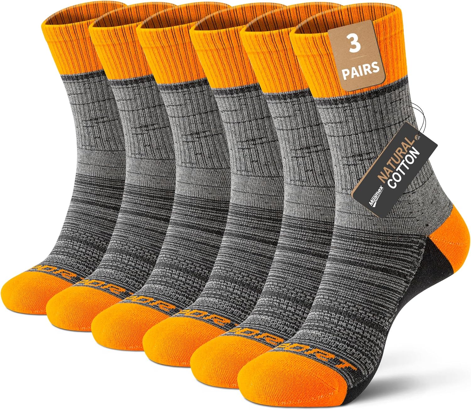 Crew Socks for Men Size 9-12,Compression Athletic Socks,Arch Support,Orange Moisture Wicking Hiking Socks,3 pairs