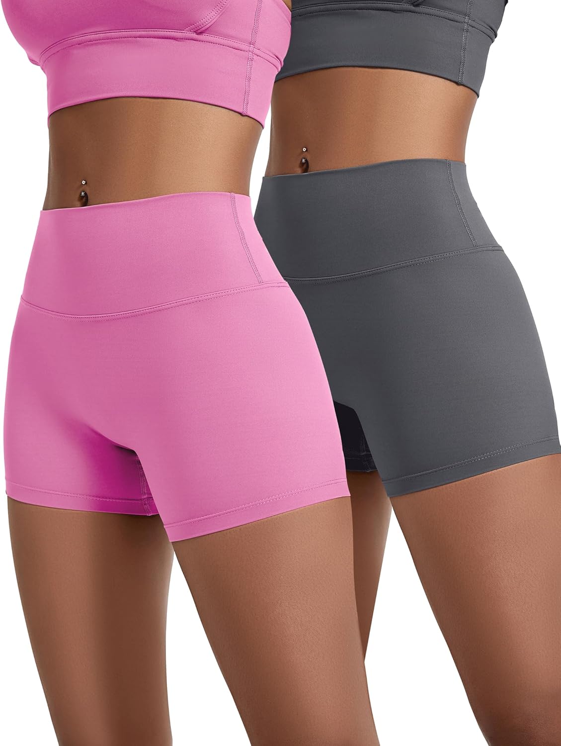 voenxe Women Workout Shorts,High Waisted Yoga Biker Short,Spandex No Front Seam Sports Gym Running Exercise Soft Short,2 Pack