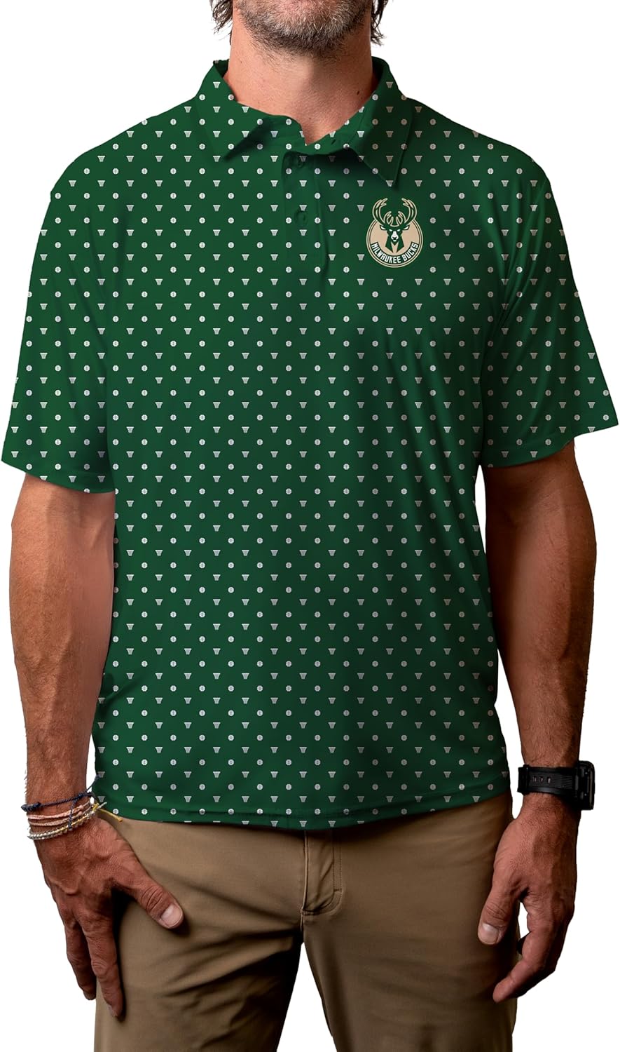 - Sun, sweat, and salt water: meet your match. The color won’t fade from exposure to the elements on this Milwaukee Bucks polo.