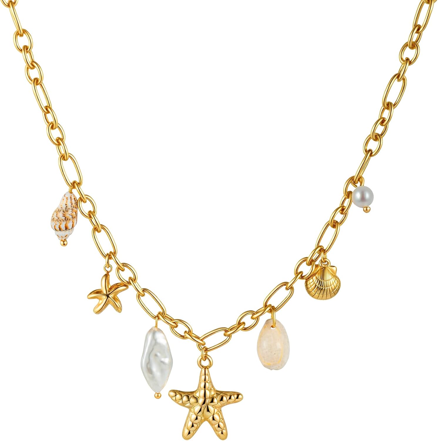 Gold Starfish Necklace for Women Charms Baroque Pearl Shell Necklace Summer Conch Beach Jewelry