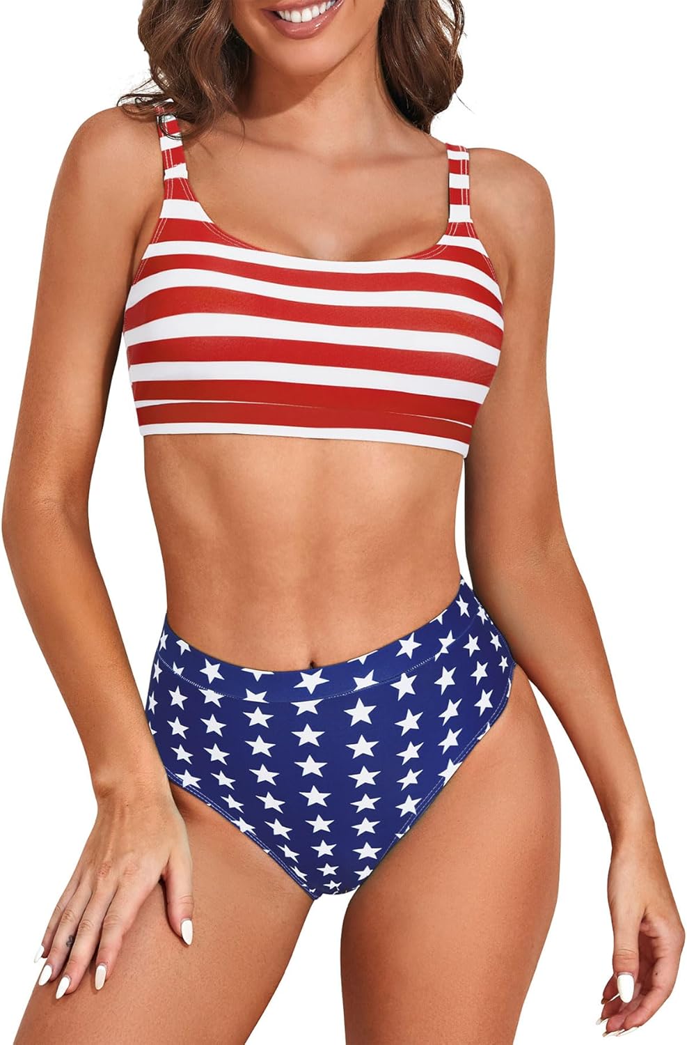 Zando 4th of July Patriotic Swimsuits for Women 2025 American Flag Bikini Red White and Blue Swimsuit Women USA Bathing Suit