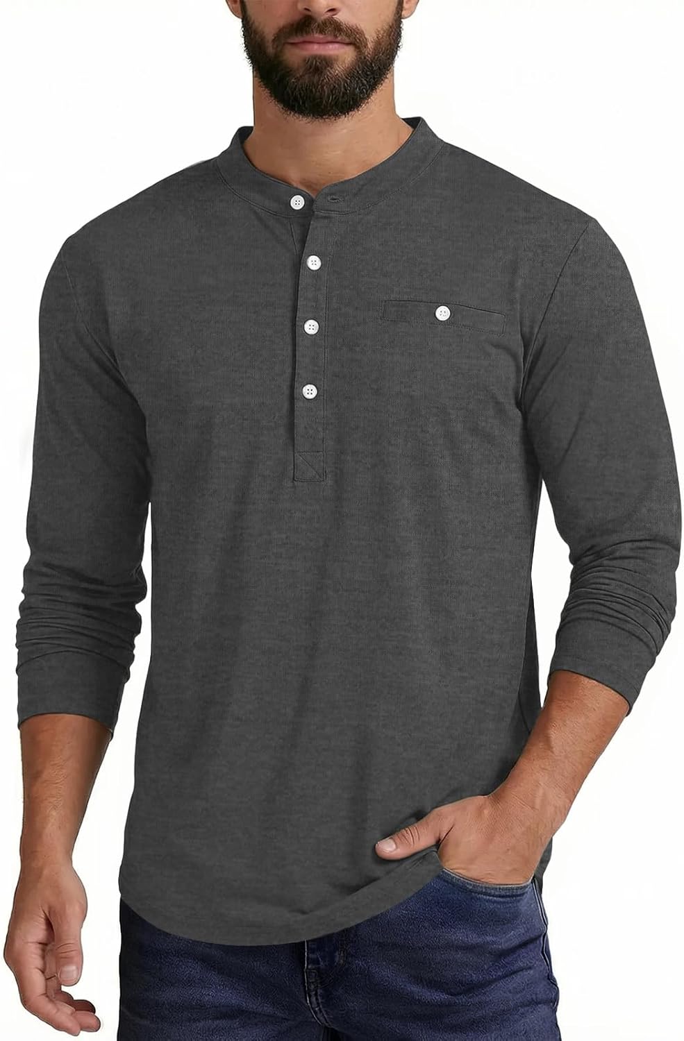 Men's Henley Shirts Casual Long Sleeve Button T-Shirt Lightweight Pullover Shirt with Pocket