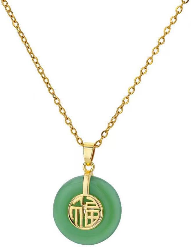 DATOA Good Fortune Pendant Necklace Vintage Good Luck Pendant Chain14K Gold Plated Jade Lucky Necklace for Women