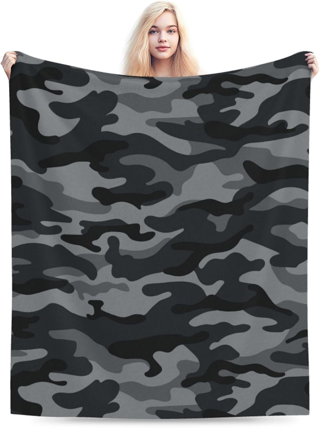 Perinsto Grey Black Camouflage Throw Blanket Ultra Soft Warm All Season Military Camo Decorative Fleece Blankets for Bed Chair Car Sofa Couch Bedroom 50"X40"