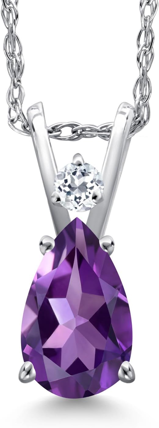 Gem Stone King Teardrop Pendant Necklace for Women | 14K White Gold | 7X5MM Pear Gemstone Birthstone and Topaz Accent | 18 Inch Chain | Jewelry Gift for Her Mom Wife