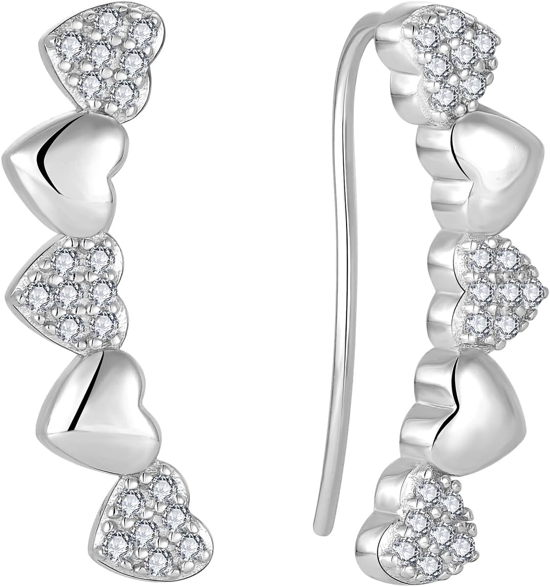 Heart Climber Earrings for Women 925 Sterling Silver White/Yellow/Rose Gold Plated Cubic Zirconia Ear Crawler Earrings Jewelry