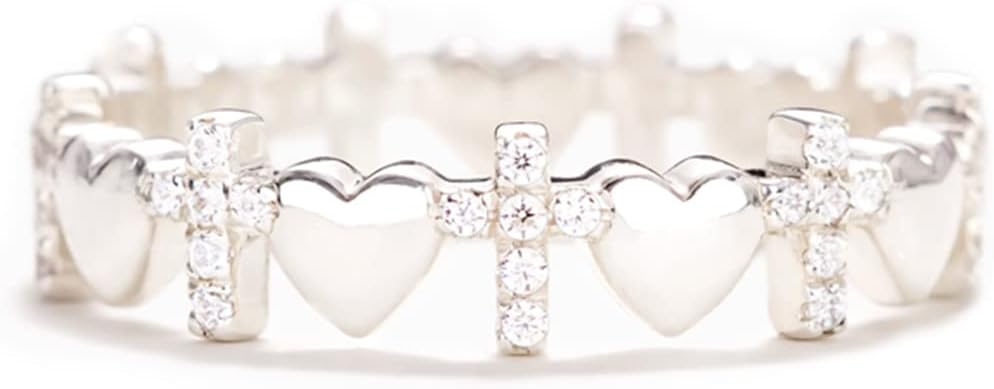 STORYJEWELLERY Daughter Ring, Daughter Birthday Gifts, Cross and Heart Ring, Birthday Gifts for Adult Daughters