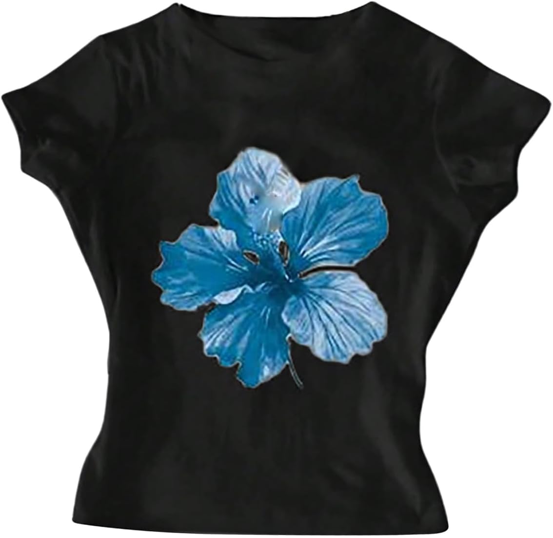 Girl's Floral Graphic Crop Tops Tees Short Sleeve Crewneck Cute Slim Fit T Shirt Summer Tops