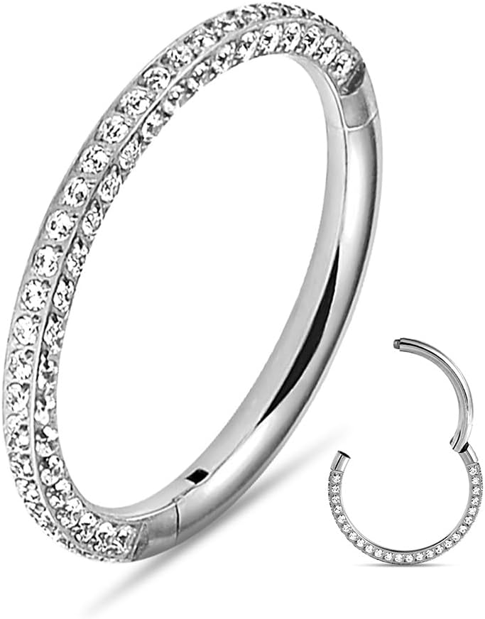 1pc ASTM F136 Titanium Septum Ring 16G/(8mm-10mm) Septum Jewelry,Triple Sided Micro CZ Nose Hoop Nose Rings Silver/Gold Cartilage Conch Helix Rook Hoop Earrings for women men