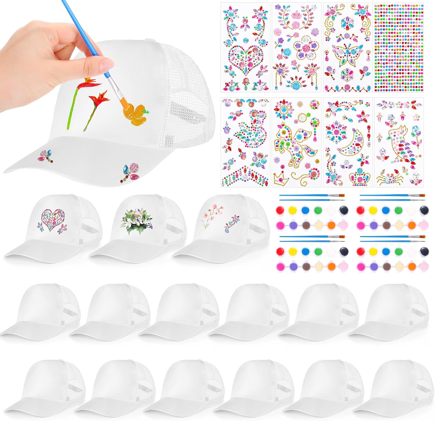 - DIY baseball cap craft kit: you will receive a bulk pack of 16 DIY white baseball caps, great for decorating and personalizing; the sport ball cap set also includes 8 acrylic paint strips, 8 brushes, and 8 sheets of acrylic rhinestone stickers, offering creative, hands-on fun for customizing your own caps