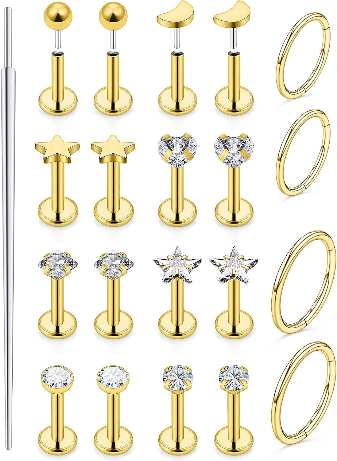 20G 18G 16G Threadless Lip Labret Medusa Monroe Nose Piercing Jewelry Surgical Steel Snake Bites Lip Rings Flat Back Push in Cartilage Tragus Helix Conch Earring Stud 6mm 8mm 10mm Bars