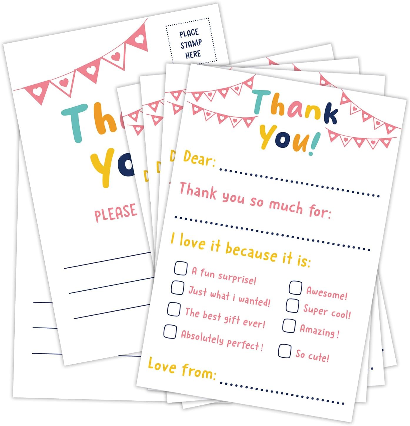 Colorful Thank You Postcards for Kids, 25 PCS 4x6 No Envelope Needed Double Sided Design Post Cards, Kids Thank You Cards Fill in the Blank Birthday Postcards for Birthday Party -02