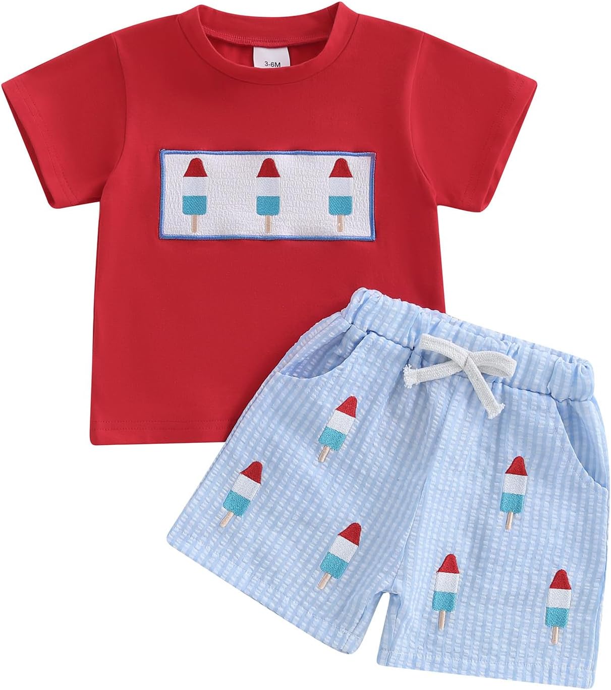 Toddler Baby Boy 4th of July Outfits American Flag T-Shirt Tops Plaid Shorts Set Fourth of July Boys Clothes