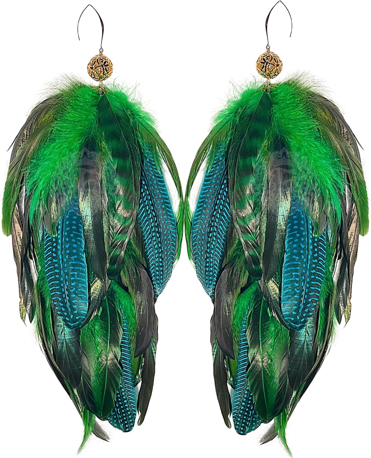 FASHMOROUS Green Feather Earrings for Women Dangling Classy Blue Feather Earrings for Women Dangling with Leaf Shape Hook