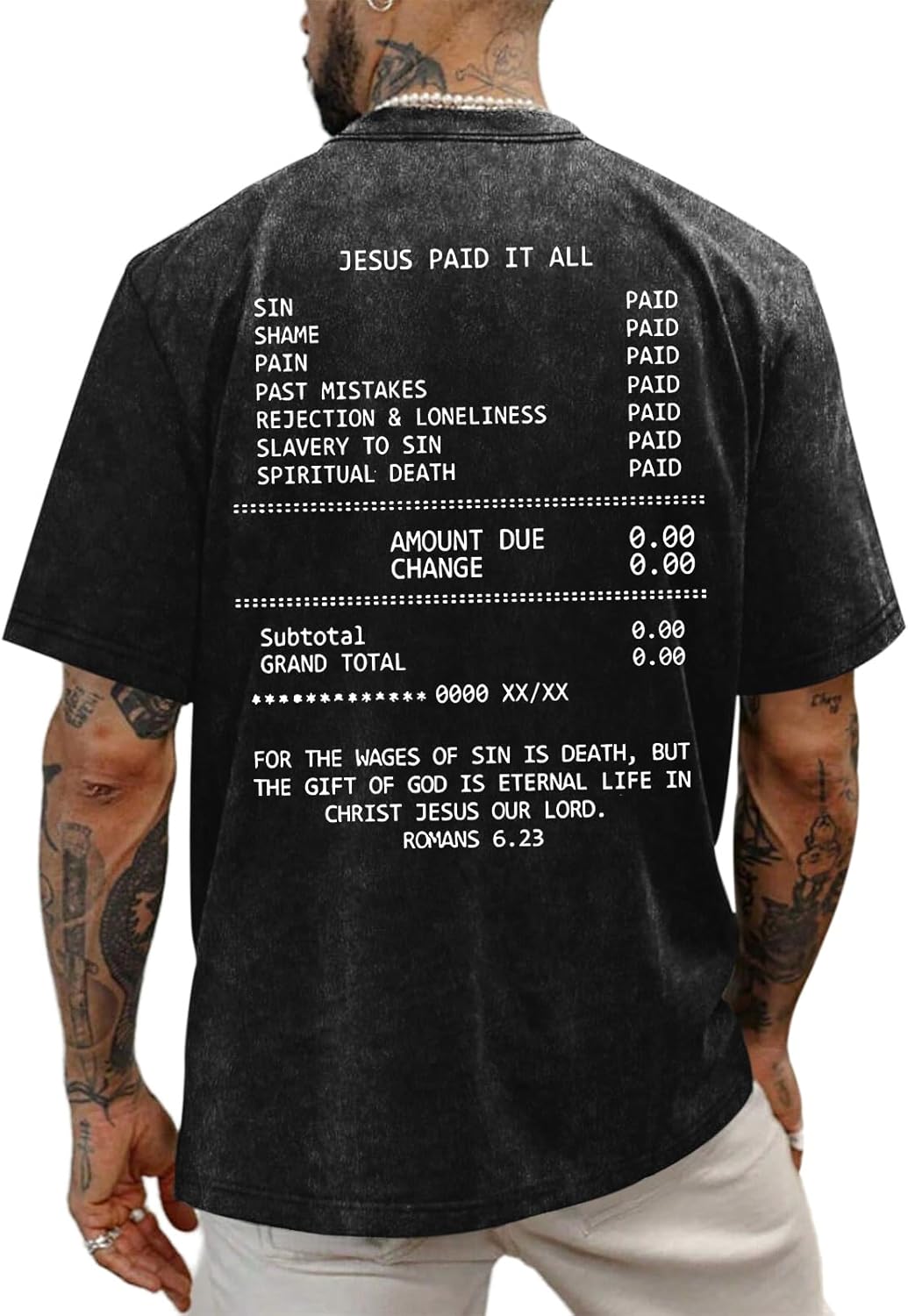 Migxsaf Christian Faith God Shirts for Men Jesus Bible Verse Acid Wash Shirt Oversized Religious Tshirts Vintage Graphic Tees