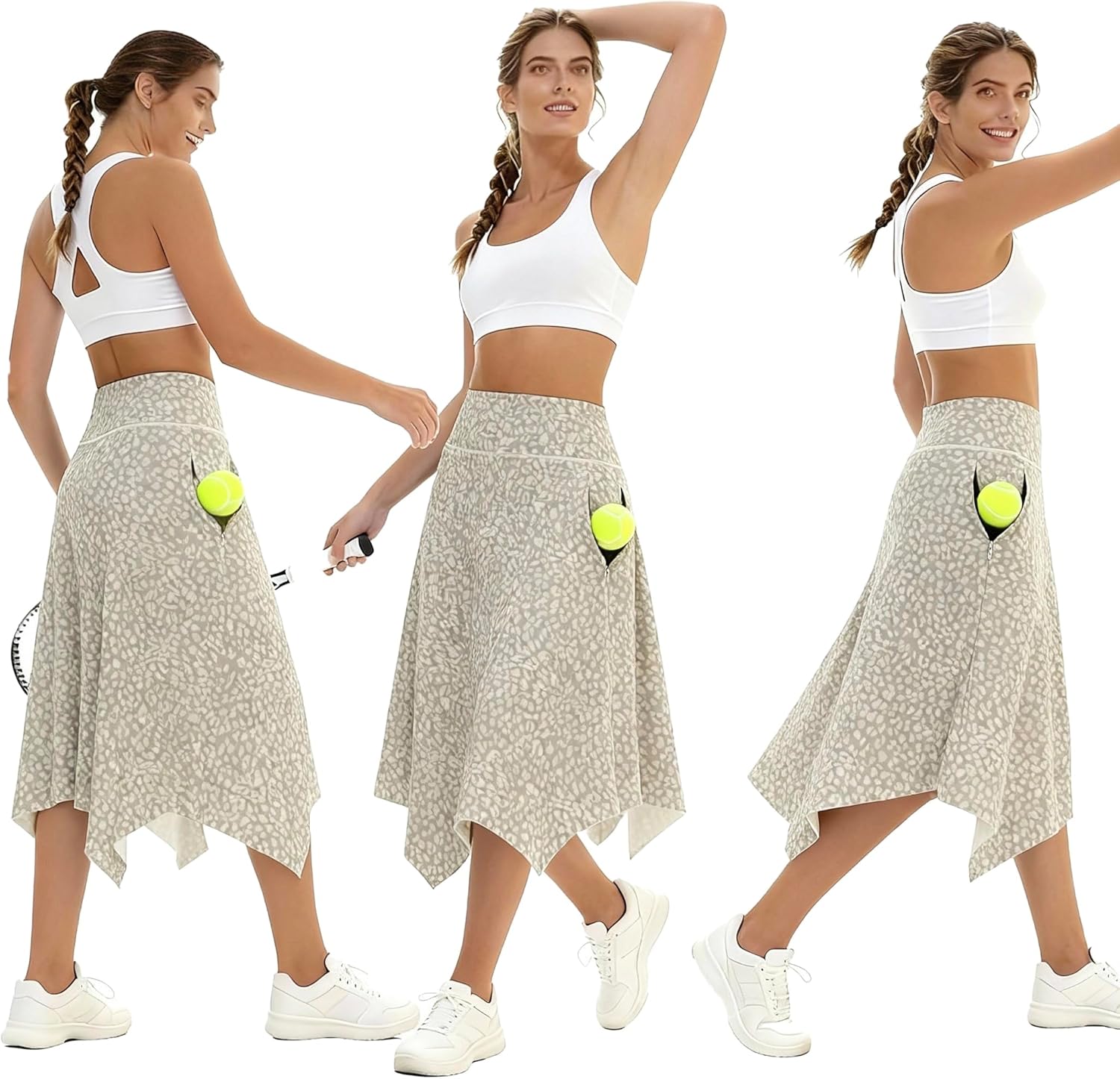 Knee Length Skorts Skirts for Women with Pockets High Waisted Athletic Skorts Womens Modest Midi Skirts Plus Size Light Leopard, 3XL