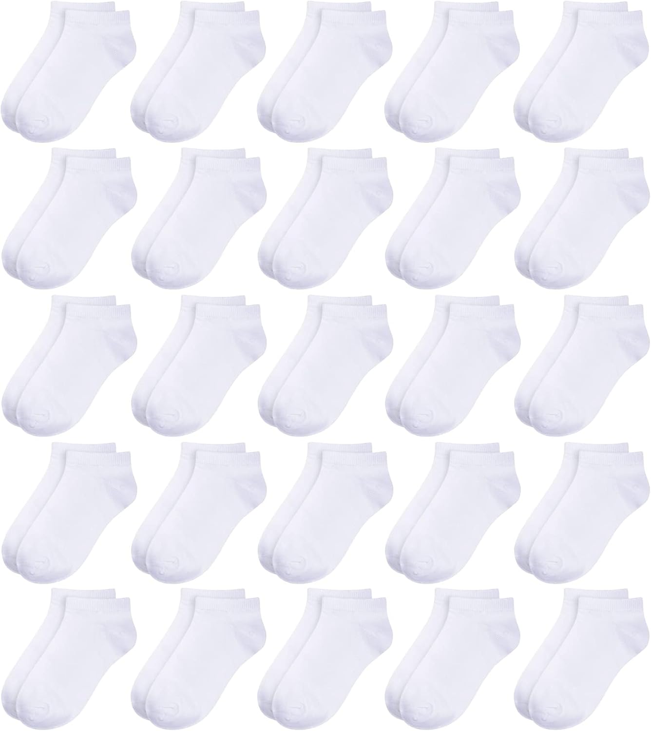 BOOPH 25 Pack Kids Low Cut Ankle Socks Boys Girls Half Cushion Athletic Socks
