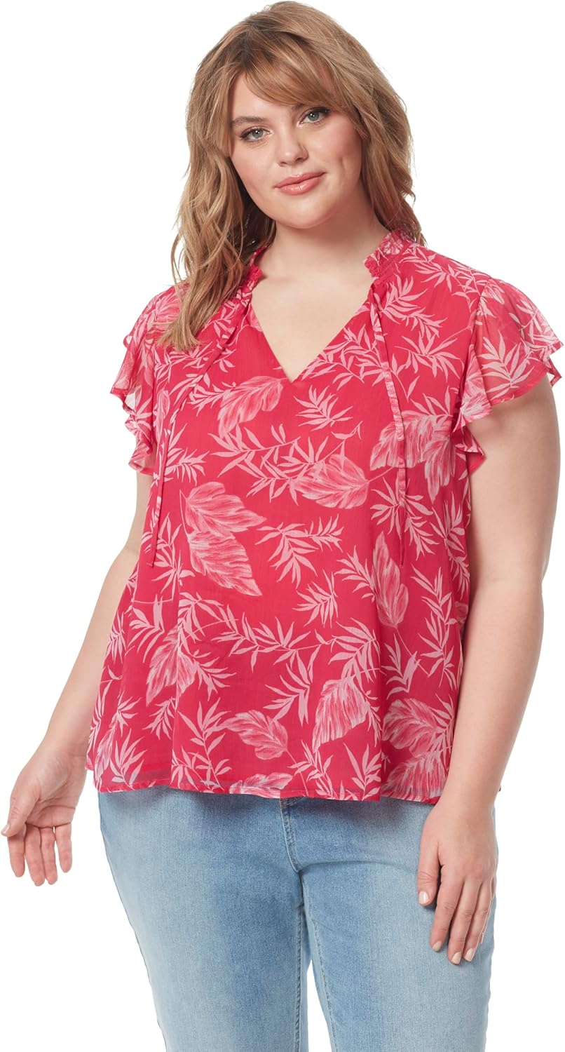 Jessica Simpson Women's Alaina Flutter Sleeve Ruffle Collar Pullover Top Plus Size