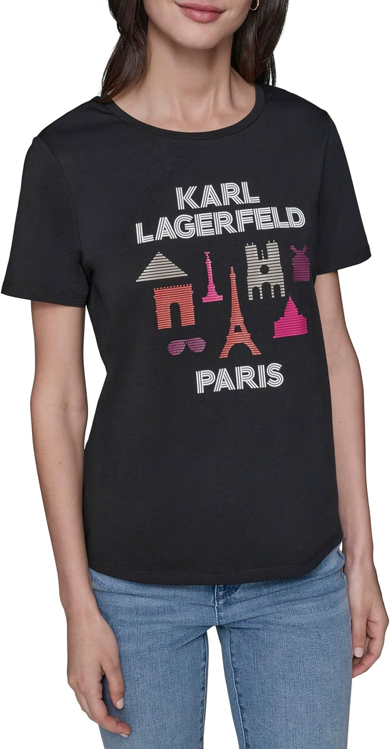 Karl Lagerfeld Womens Soft Everyday Logo Casual T-Shirt
