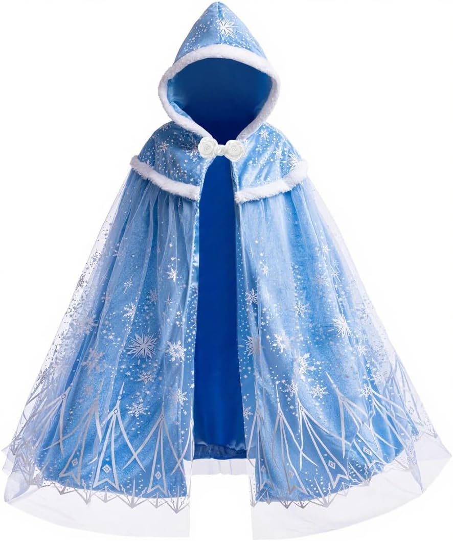 - 🥳️【Versatile Occassion】Every girl has a princess dream and our Elsa princess cape can easily help your princess fulfill that wish. The fashionable snow cape is perfect for children's activities, role-playing, Halloween, Christmas, winter parties, stage performances, themed parties, birthdays, wedding and school celebrations.