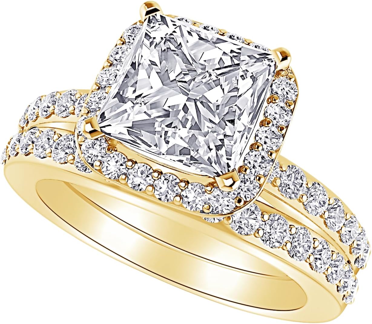 Houston Diamond District 1 to 6 Carat Princess LAB GROWN Diamond and LAB GROWN Diamond Wedding Bridal Set (AAAA Heirloom Quality)