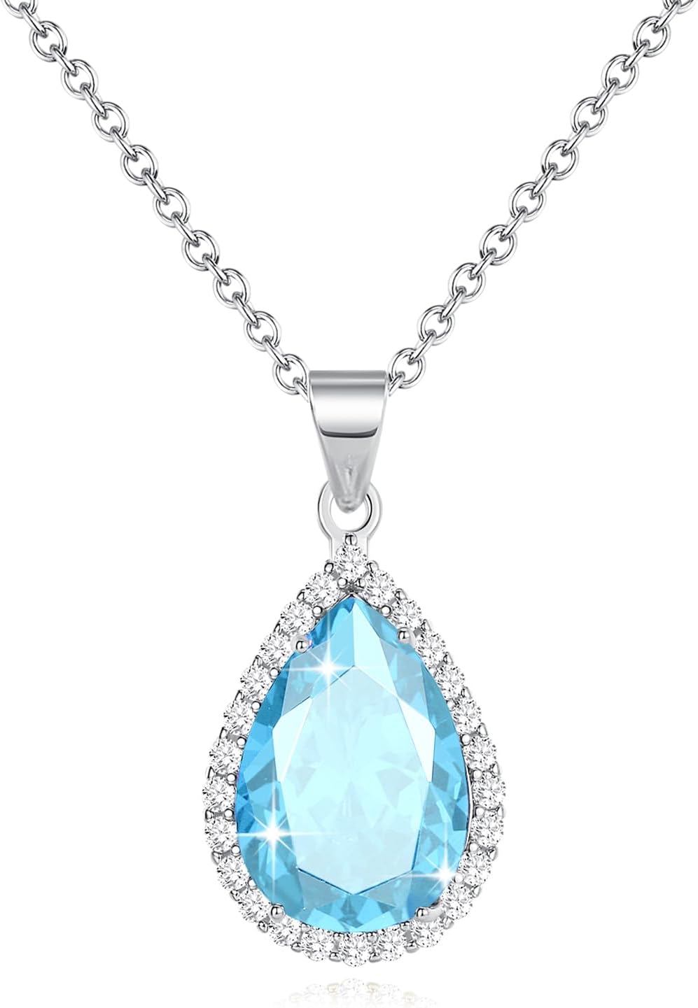 Diamond Teardrop Pendant Necklaces for Women Crystals Birthstone Costume Jewelry Gifts for Women,Gold Plated 17.92 + 1.97 inch Chain