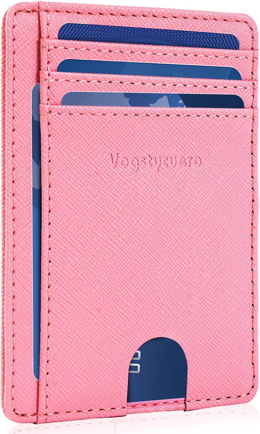 Front pocket wallets for men RFID Blocking Credit Card Holder Card Cases Slim Minimalist wallet with Gift Box(1, Cross Pink)