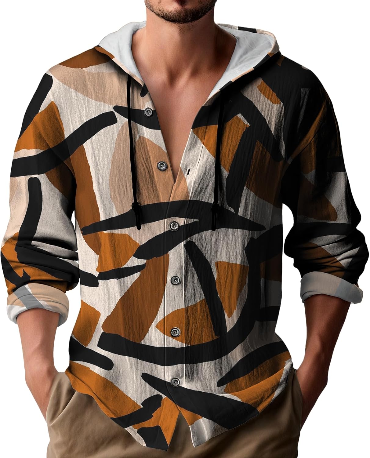 Fashion Vintage Men Hoodies Pullover with Drawstring Baggy Graphic Hoodies Western ...