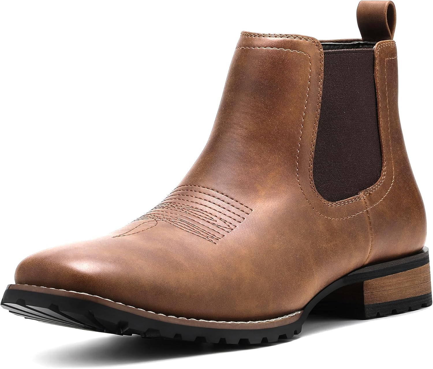 JASONSTAR Chelsea Cowboy Boots for Men Square Toe Western Boots Classic Casual Work Ankle Boots-botines para hombre