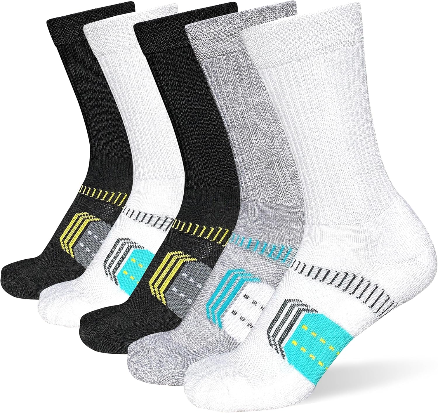 Womens Cushioned Athletic Running Crew Socks Breathable Wicking Comfort Hiking Socks 5 Pairs