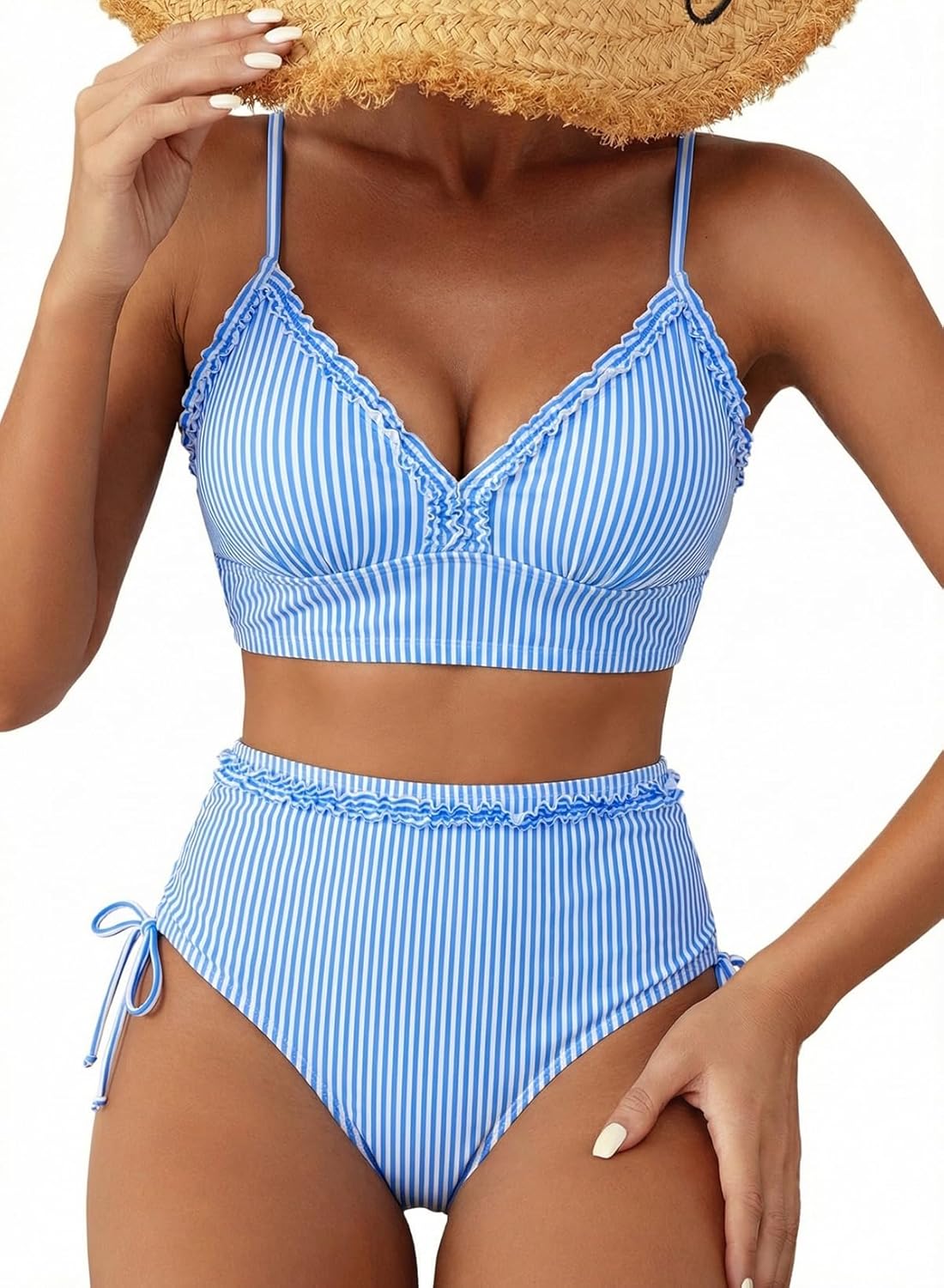 Herseas Women's Splice Ruffle Trim Bikini Sets Tie Side Swimsuits High Waisted Bathing Suits